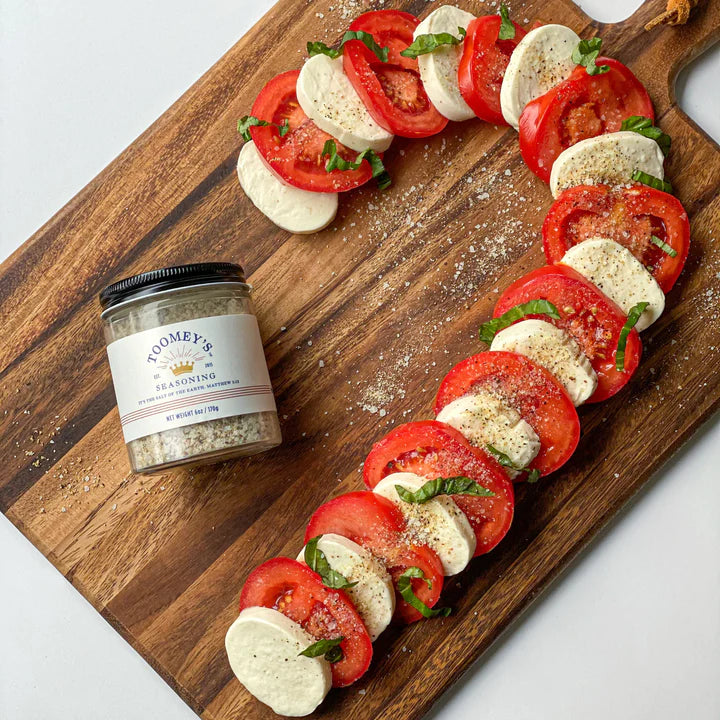 A balanced blend of kosher salt, garlic, pink peppercorns, and roasted black pepper, Toomey’s Seasoning makes everything taste better. It’s a small ingredient with a bold outcome.